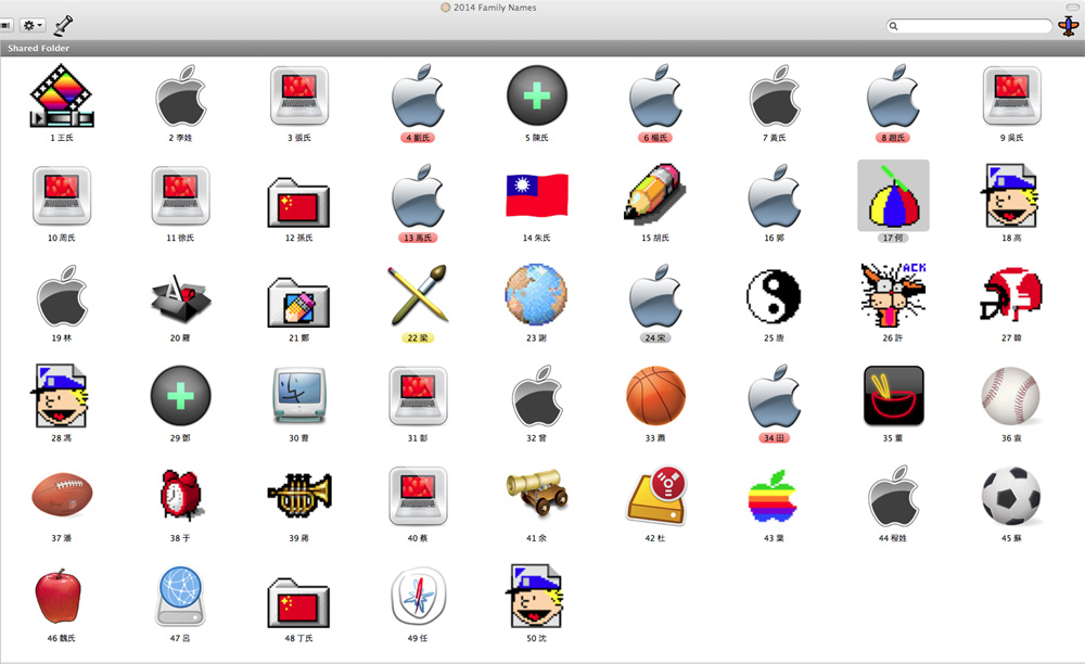 以上姓氏人口總數少於2000萬人、多於1000萬人。